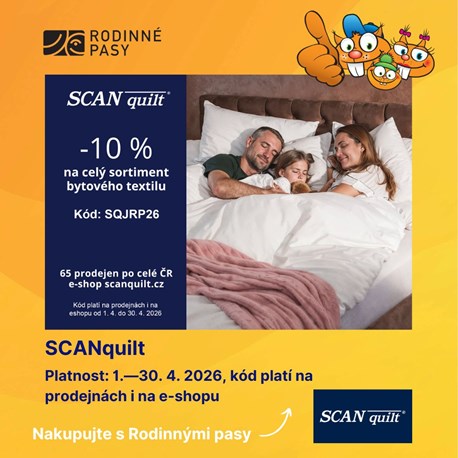 Naším partnerem v programu Rodinný pas je česká značka SCANquilt, která je na trhu již 35 let a stále přináší nové a zajímavé trendy nejen v bytovém textilu, ale i kvalitní a designové produkty pro vytvoření toho správného domova a atmosféry, kde si kvalitně odpočinete a zrelaxujete.